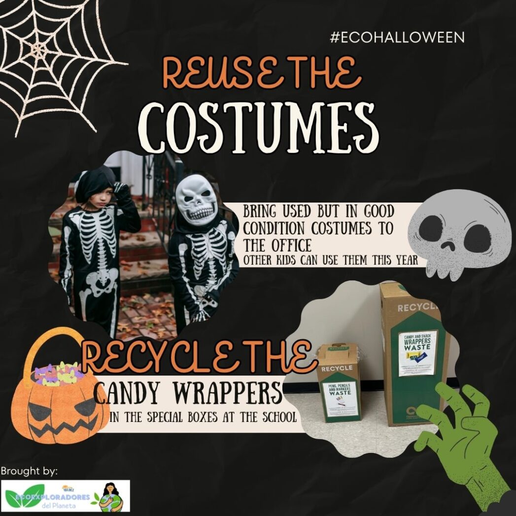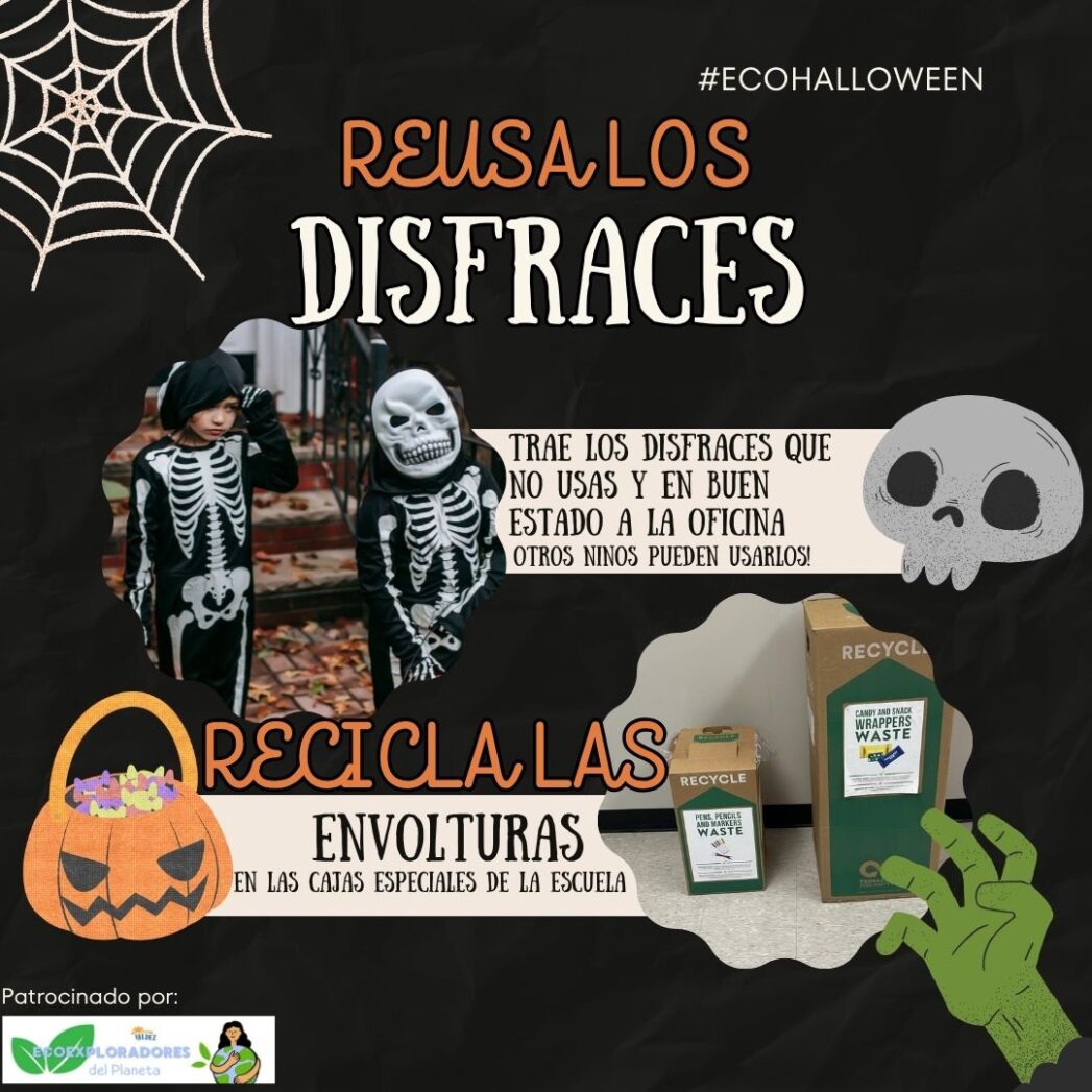 Durante Halloween, muchas personas compran disfraces para usarlos solo una o dos noches, ¡y luego los tiran, terminando probablemente en los vertederos! Por favor, considera reutilizar los disfraces siempre que sea posible.