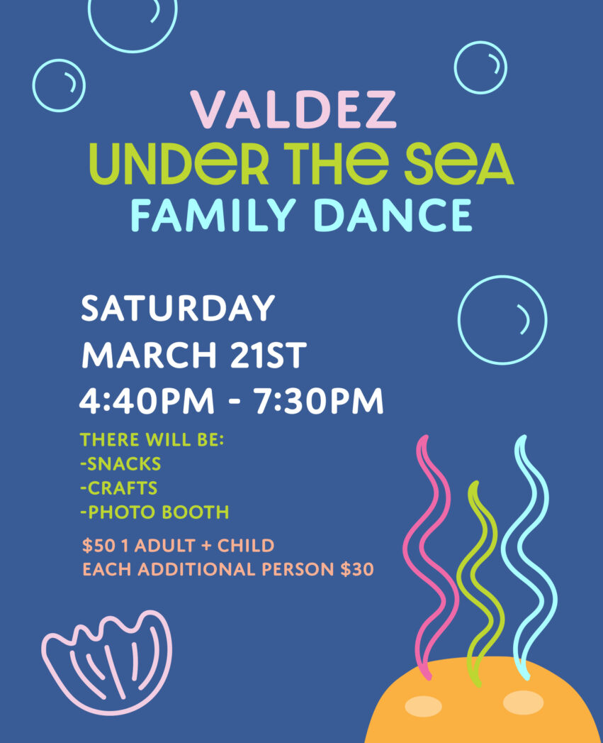 Join us for a night of fun with our Valdez community. Dust off your dancing shoes, get dressed up & come party! We will have photo areas, finger foods, a craft and lots of dancing! Great time to connect with old friends and make new ones while raising money for our non-profit PTO!
